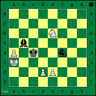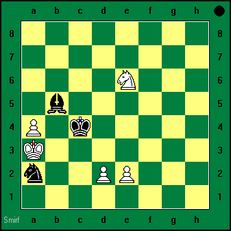 1.С:а4 (белый слон) Сс2 2.Кd5 Cd3x