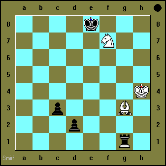 1.Ле1 С:h2 (пешка на h7) 2.Ле5 С:е5 (ладья на h8 - кстати, эта ладья еще не ходила, значит